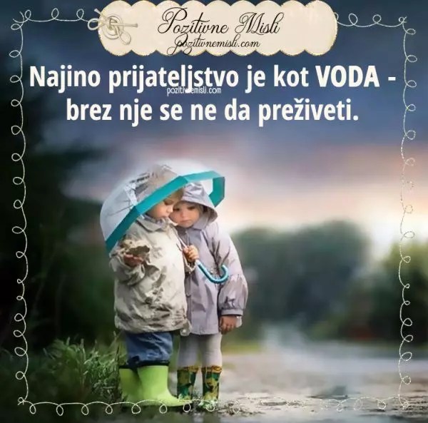 Želite li imati prijatelje među ljudima, morate za njih nešto učiniti, morate im posvetiti vremena, energije nesebične ljubavi i pažnje.. Humphrey) „jedna od najljepših kvaliteta istinskog prijateljstva jest shvaćati i biti shvaćen. Većina lijepih sjećanja ili smješnih situacija događa nam se u društvu prijatelja. Prijateljstvo nam pokazuje da ni u jednoj tuzi ni radosti nismo sami. pam brown.. Kome si važan, tražit će te.